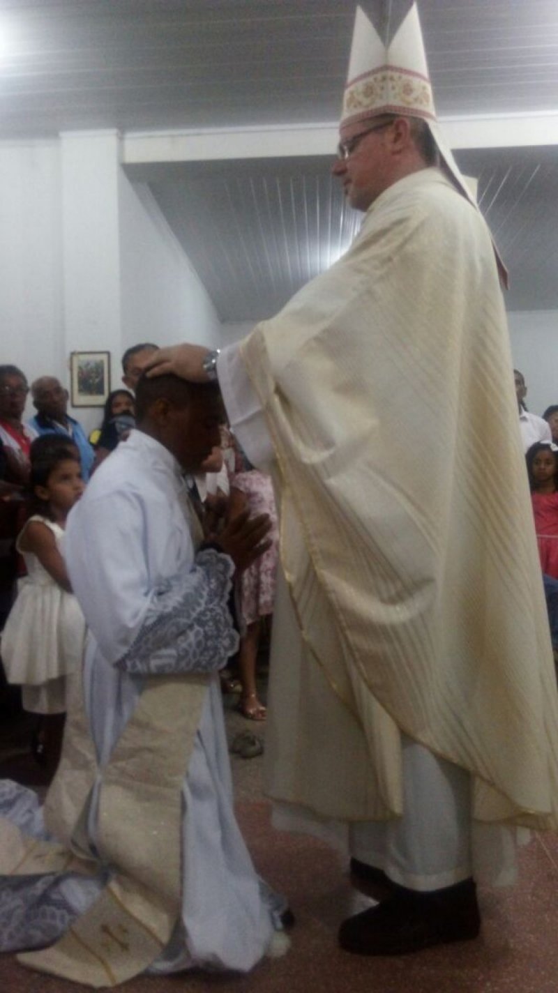 A Igreja de Bom Jesus ganhou mais um Padre. Foi neste último sábado, dia 09/11/17, em Barreiras do Piauí-PI. Dom Marcos Antonio Tavoni, ordenou sacerdote o Diácono Jucilei Lima da Silva. O Neo Presbítero é natural de Barreiras do Piauí e exercerá seu ministério presbiteral como Vigário Paroquial da Catedral de Nossa Senhora das Mercês e do Santuário Bom Jesus da Boa Sentença, em Bom Jesus-PI. A Celebração de Ordenação contou com grande números de participantes, deixando a pequena Matriz, dedicada a São Francisco de Assis, ainda menor. A cerimônia estava programada para acontecer ao ar livre, na praça da Matriz, mas as chuvas não permitiram. Mesmo assim nada perdeu o seu brilho e as chuvas foram acolhidas como sinais de bênçãos para a vida e missão do novo padre. (PASCOM/BOM JESUS-PI)