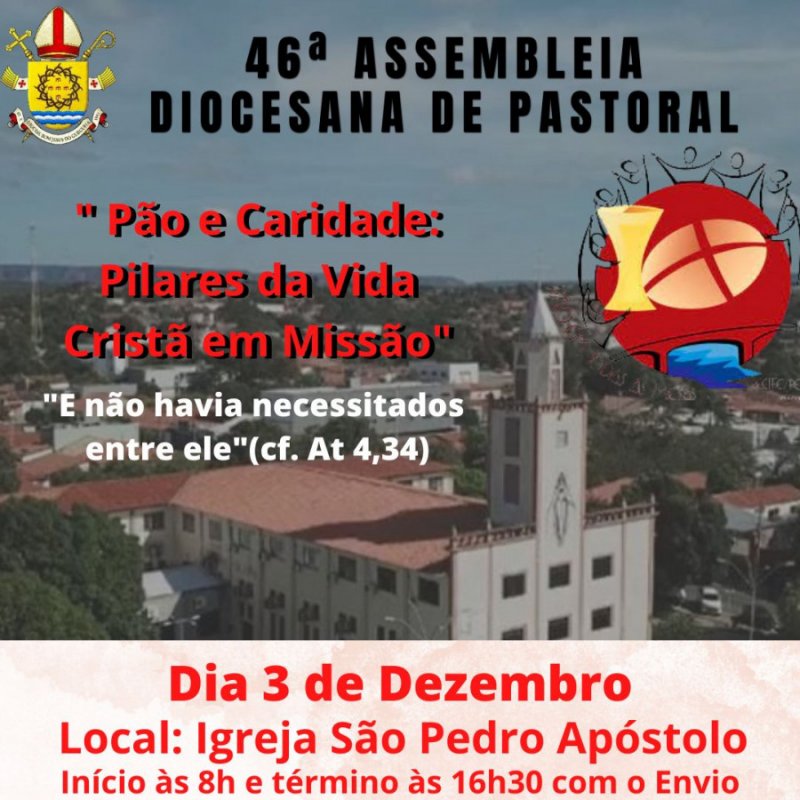 A 46ª Assembleia Diocesana da Pastoral, aconteceu no sábado dia 03/12, na Paróquia de São Pedro Apóstolo e dependências da Unidade Escolar Joaquim Parente, Bairro DER, em Bom Jesus.