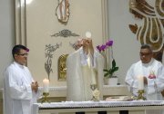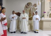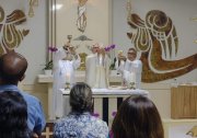 A Missa de ação de graças, votiva ao Sagrado Coração de Jesus, aconteceu na Capela do Santíssimo Sacramento, da Catedral, com um público reduzido. A comemoração maior será no dia 26/03, terça-feira da Semana Santa, quando o Clero e todo povo de Deus estará reunido para a Missa do Santo Crisma e comemoração dos 10 anos de Posse Canônica de seu Bispo.