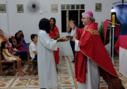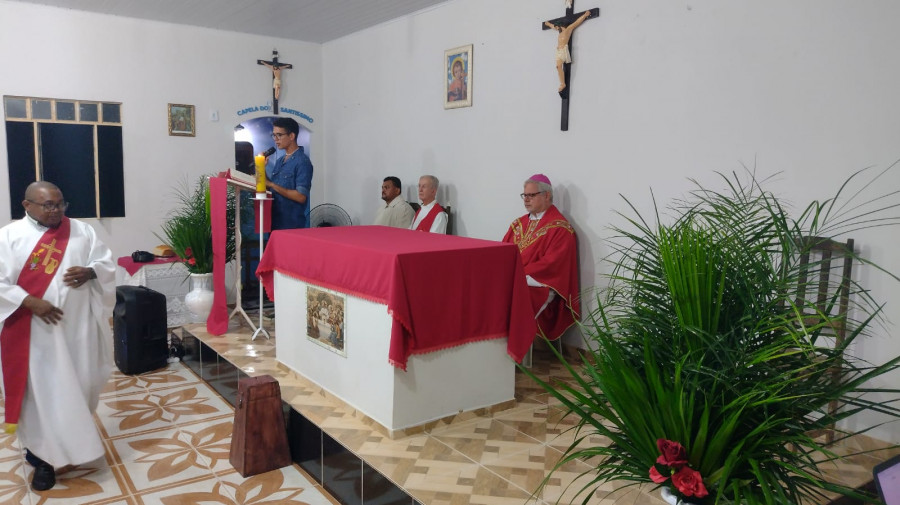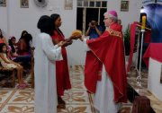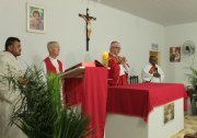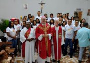 Dom Marcos, em sua homilia, exortou os jovens à perseverança na fé, e agradeceu a oportunidade da celebração, o trabalho dos Catequistas e a Dedicação do Diácono Permanente Altamiran que reside e atua na Comunidade.