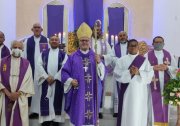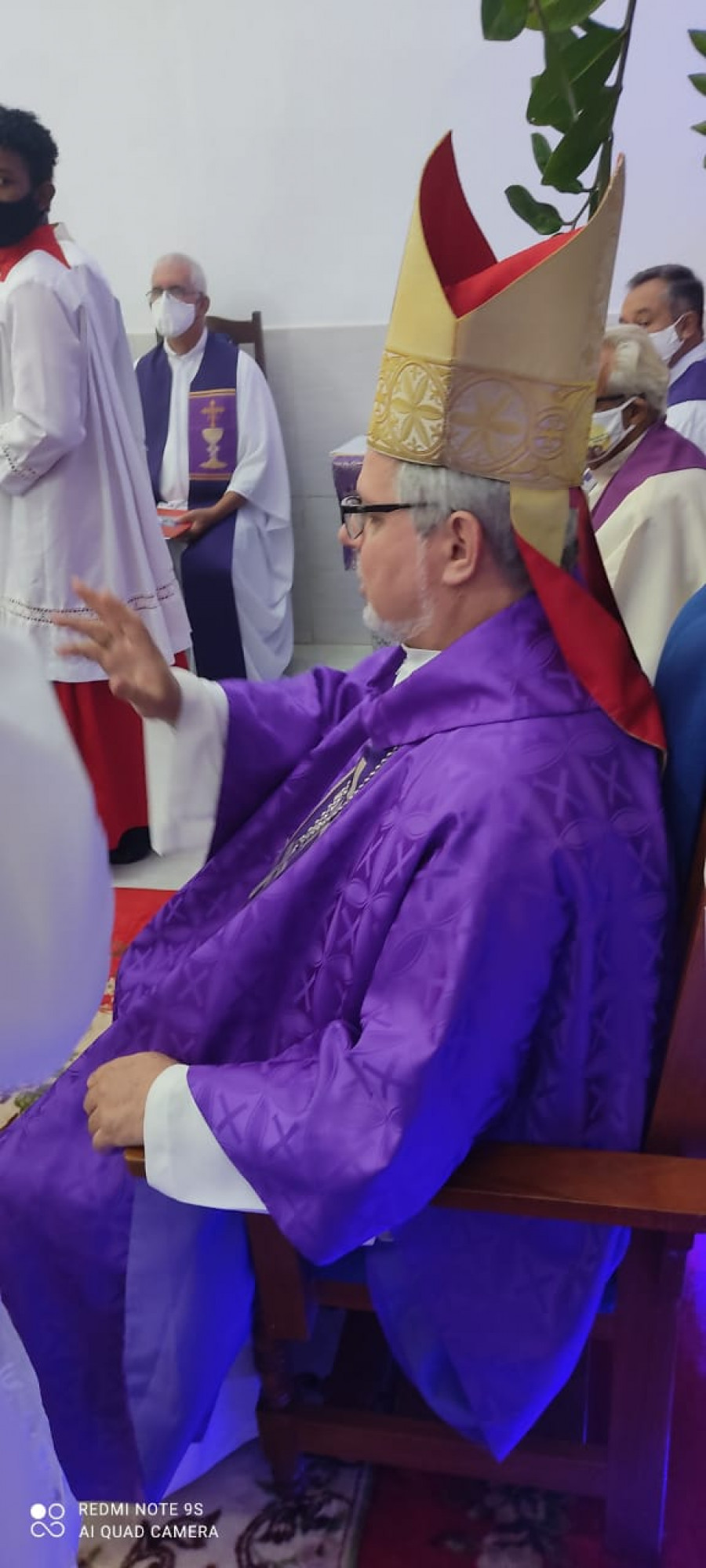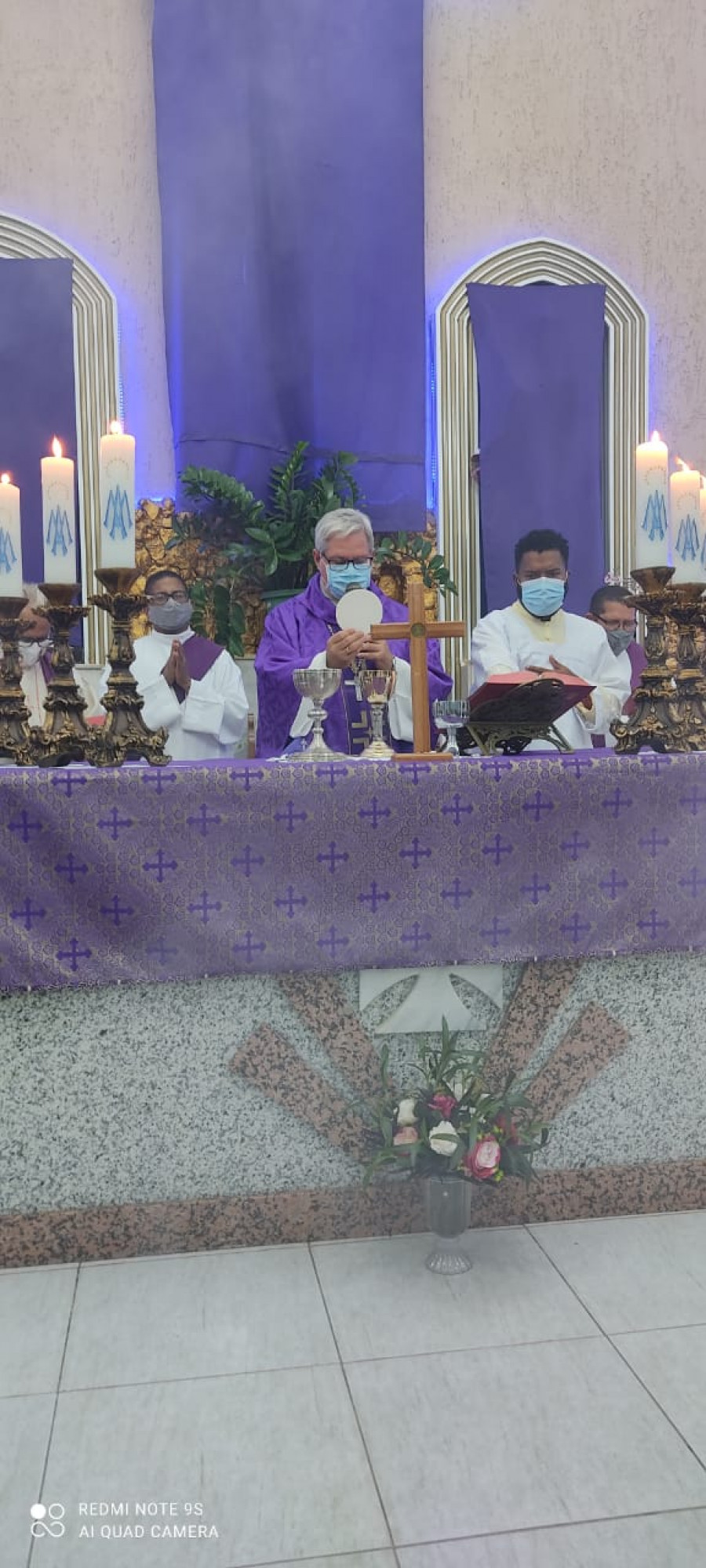 Ao final da Celebração, Dom Marcos agradeceu a todos e de maneira especial ao Pe. Frei Francisco Oliveira, Pároco atual, pelo excelente trabalho realizado nos últimos oito anos e falou da alegria da notícia de sua permanência, na Comunidade, por mais um triênio.