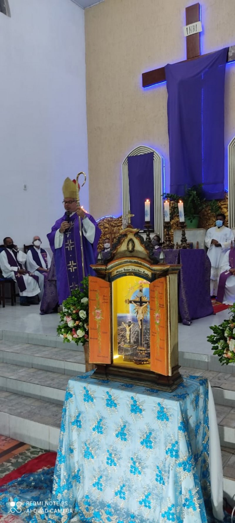 Ontem, 21/03, foi a vez da Paróquia Nossa Senhora da Conceição, Igreja Matriz da cidade de Corrente-PI, celebrar com júbilo sua história, comemorando os 100 anos de vida de Igreja de nossa Diocese. Foi uma belíssima celebração. Estiveram presentes, concelebrando com Dom Marcos Tavoni, os Padres Cleonilson (Sebastião Barros-PI), Pe. José Manoel (Corrente-PI), Pe. Hélio (Brasília-DF) e também presente o Diácono Domingos (Bom Jesus-PI).