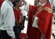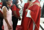 No último domingo, 17, em missa festiva, do último Domingo do Tempo Comum, Dom Marcos Tavoni ungiu com o Santos Crisma 53 jovens da Paróquia Nossa Senhora Aparecida. No final agradeceu o trabalho do Padre Márcio Reis e foi homenageado pela comunidade. Confira as nossas fotos e as palavras finais proferidas pelo padre Márcio. (PASCOM - Bom Jesus)