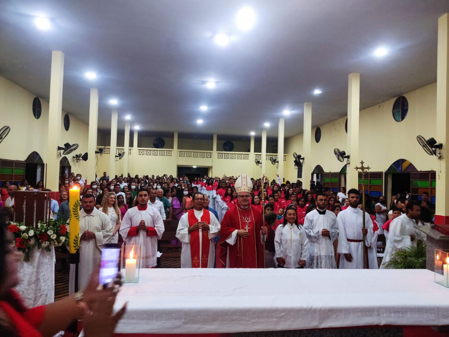As últimas celebrações de Crismas de 2022, na Diocese, aconteceram no domingo, dia 18/12. Cumprindo uma intensa agenda missionária-pastoral de final de semana, Dom Marcos esteve pela manhã, em Cristino Castro, Região Norte da Diocese, onde realizou a Confirmação de quase 80 jovens; e à tarde esteve em Gilbués no Santuário de São Raimundo Nonato ou realizou a crismas de aproximadamente 140 jovens.