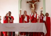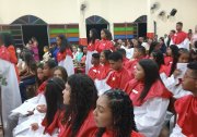 Em Gilbués, uma multidão de fiéis participou da Celebração da Missa, concelebrada pelo Pároco, Pe. José Valdo, organizada por vários seminaristas que acompanhavam Dom Marcos na Missão.
