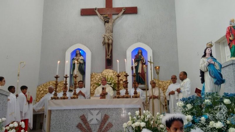 Ao término da missa da tarde, foi realizada a procissão com a padroeira Imaculada Conceição, seguida por uma belíssima coroação de Nossa Senhora e apresentações artístico-religiosas.