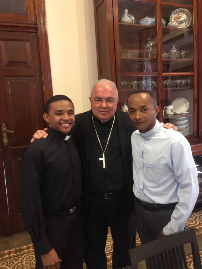 Os Diáconos Jucilei e Cleonilson estiveram uma semana na Capital Fluminense, em retiro espiritual preparatório para receber ordenação presbiteral. O retiro foi orientado por Dom Paulo Demarchi, Abade Sirsticiense e aconteceu no Seminário Redemptoris Mater do Rio de Janeiro. Na ocasião os dois Diáconos foram gentilmente recebidos pelo Cardeal do Rio de Janeiro, Dom Orani Tempesta. Os Diáconos serão ordenados padres em suas cidades de origem. Diácono Cleonilson dia 30 de setembro, em Monte Alegre e o Diácono Jucilei em Barreiras do Piauí, no dia 9 de Dezembro. Serão mais dois padres para nossa Igreja em Bom Jesus, pelo que damos graças e louvamos a Deus. (Pascom/Bom Jesus-PI).