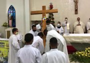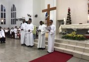 Foi na Paróquia de Santana, na Cidade de Canto do Buriti, no Domingo, dia 27/12. A Cruz Missionária foi introduzida pelas mãos dos Seminaristas da Diocese de Bom Jesus. Dom Eduardo, Bispo de SRN, presidiu a Celebração e Dom Marcos Tavoni, Bispo de Bom Jesus fez a Homilia sobre a Sagrada Família e reflexão dando sentido ao Evento da Cruz. Estavam presentes, o Pároco Pe. Vespasiano e o Pe. José Alves, Promotor Vocacional da Diocese de Bom Jesus. Apesar das regradas de quarentena, impostas pela pandemia, a Celebração ocorreu em clima festivo e contou com grande número de fiéis , presentes e também conectados pela internet. A Cruz percorrerá a Diocese de SRN, até o final de janeiro, depois seguirá para a Diocese de Floriano.