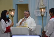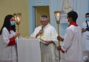 A celebração transcorreu num clima festivo, de muita alegria e fraternidade. Logo após os ritos iniciais, foram lidos o Decreto de Instalação da Paróquia e dada a posse ao seu primeiro Pároco: Pe. Arestides Medeiros dos Santos Filhos.