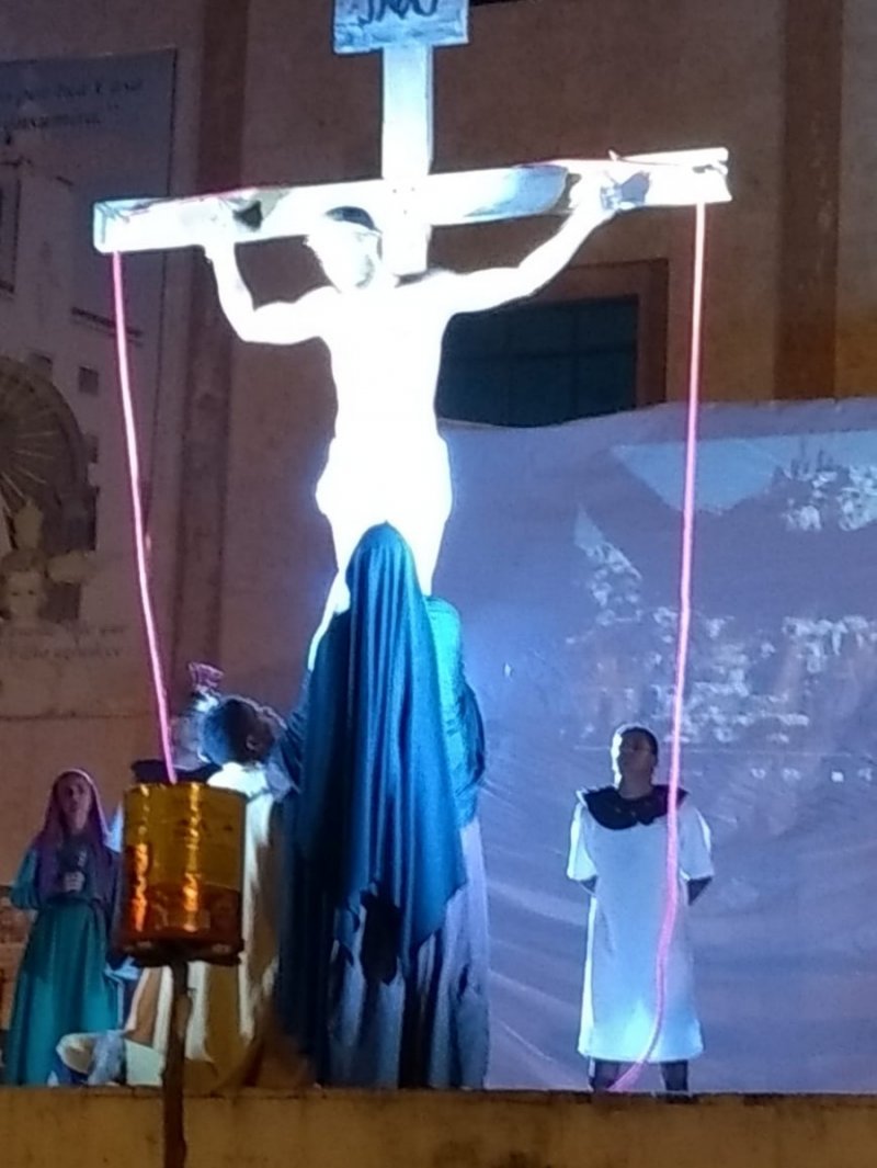 O espetáculo tem como objetivo reviver toda a história da Paixão, Morte e Ressurreição do Senhor, ou seja, a doação de sua vida em prol da nossa salvação. Foi uma noite muito especial que emocionou as centenas de pessoas presentes, fiéis de Bom Jesus e das cidades vizinhas, padres, religiosas e nosso Bispo Dom Marcos.