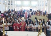 No Domingo, 26, pela manhã, a Catedral, mais uma vez ficou repleta para a Missa das 9h, que acolheu um grupo de 58 jovens, entre eles alguns adultos, que receberam a Confirmação do Batismo, recebendo a unção do nosso Bispo Diocesano.