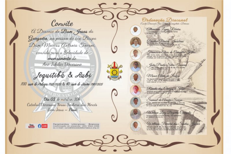 Dom Marcos Tavoni, Bispo da Diocese de Bom Jesus fez um vídeo convidando a todos os fiéis a participarem das celebrações finais do Jubileu Diocesano Jequitibá e Rubi, que se encerra amanhã, dia 3/10.