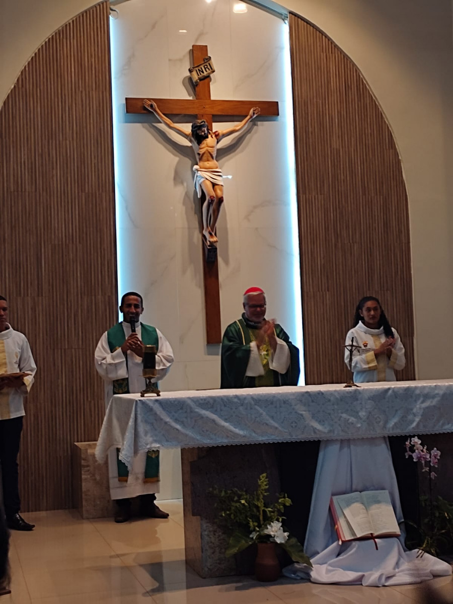 Pároco, Pe. José Ney, para presidir uma das Missas em comemoração.
