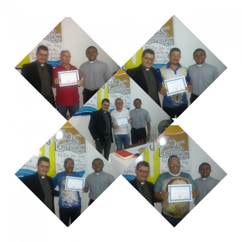 Dia 8 de dezembro na Paróquia Menino Jesus de Praga aconteceu a solenidade de encerramento do primeiro ano letivo da Escola Diaconal São Filipe. A Escola Diaconal é Diocesana e conta com dez Aspirantes ao Diaconato Permanente, sendo dois da Cidade de Bom Jesus, um de Cristino Castro, um de Santa Luz, dois de Parnaguá, três de Corrente e um de Cristalândia. O Diretor responsável é o Padre Claudinei Souza da Silva, Especialistas em Sagradas Escrituras e Pároco da Paróquia Menino Jesus de Praga e a Direção Geral é de nosso Bispo Dom Marcos Antonio Tavoni. Durante esse ano de 2019 foram estudados pelos Aspirantes as seguintes disciplinas: Bíblia, Eclesiologia, Catequese, Mariologia, Concílio Vaticano Segundo, Documentos da CNBB, Documentos do Papa e da Igreja, Diretrizes da Igreja, Espiritualidade, Liturgia e o Caticismo da Igreja Católica. Os estudos se deram a cada primeiro final de semana de cada mês iniciando em março e terminando em dezembro de 2019. Para o próximo ano está previsto o início em fevereiro com o encontro do Bispo com os Aspirantes e suas famílias. Possivelmente ao final de 2020 acontecerá em nossa Diocese a Ordenação Diaconal destes Aspirantes.