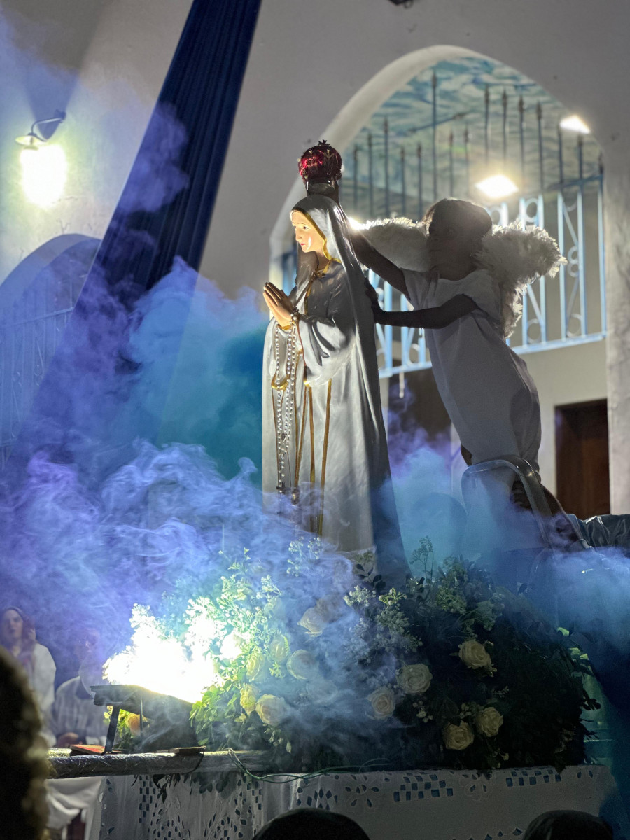 No dia seguinte, em uma atmosfera de jubilosa devoção, os fiéis se reuniram para a grandiosa procissão em homenagem a Nossa Senhora de Fátima. Sob um céu abençoado, os participantes caminharam pelas ruas onde era possível ver altares nas calçadas, carregando símbolos de fé e cantando louvores à Virgem Maria. O ponto alto da celebração foi a coroação solene de Nossa Senhora, um momento de reverência e amor à mãe celestial.