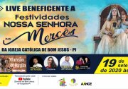 No dia 19 de setembro de 2020 a partir das 21h teremos a LIVE BENEFICENTE à FESTIVDADES DE NOSSA SENHORA DAS MERCÊS com MPB e artistas da terra. Estamos necessitando de empresas e pessoas que desejam serem patrocinadores. As doações e ofertas também pode sem feitas