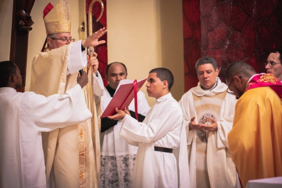Aconteceu na noite do último sabado (27) em Redenção do Gurguéia, a cerimônia de ordenação sacerdotal do Frei FÁBIO RIBEIRO SOARES. Frei Fábio é filho de Redenção, mas pertence à Ordem dos Mercedários, e é o 4º redencense a ser ordenado padre no município. O evento religioso aconteceu na Igreja Matriz de Redenção do Gurguéia que ficou lotada de filhos da cidade para acompanhar a ordenação. A celebração eucarística e oração de ordenação foram presididas por Dom Marcos Tavoni e ainda contou com a presença de Padres de outras cidades vizinhas e Seminaristas.