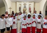 A Celebração foi presidida por Dom Marcos Tavoni, nosso Bispo Diocesano e contou, ainda, com a concelebração do Pe. Crisóstomo, filho e vocação da Comunidade Local.