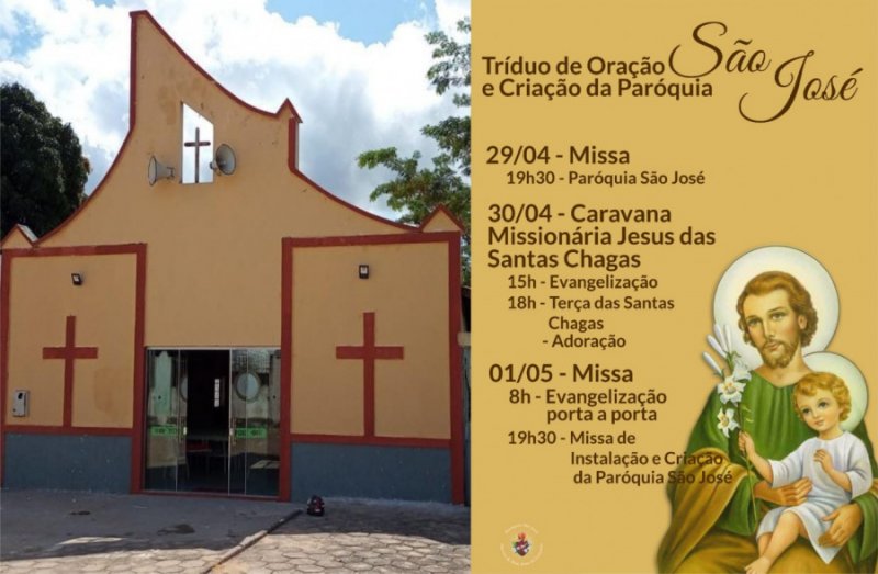 Bom Jesus vai ganhar uma nova Paróquia. A Comunidade, dedicada a “São José”, será instalada, por Dom Marcos Antonio Tavoni, neste 1º de maio, às 19h e 30min, domingo, 3º da Pascoa e Memória de São José Operário. O Bispo convida a todos para a participação.