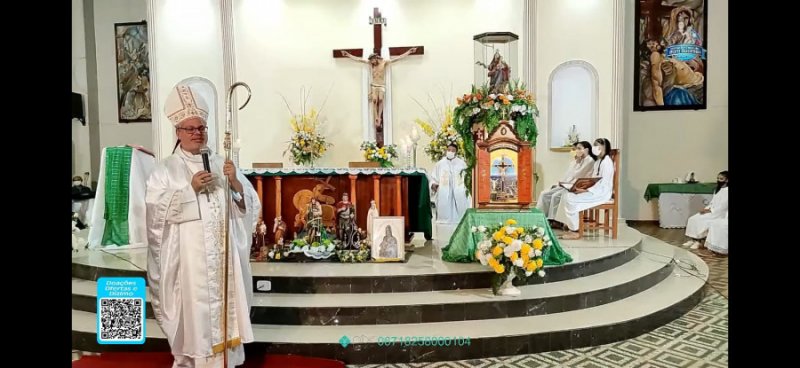 Na ocasião foi possível ouvir o resumo da história da Paróquia, muito bem elaborado e intercalado graciosamente por um artístico cordel. Momento este finalizado com um hino jubilar especialmente preparado, que acolheu a uma belíssima procissão de imagens dos santos padroeiros vindos de todas as Comunidades da Paróquia.