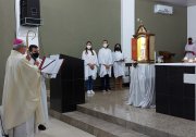 Nos momentos finais da Celebração, Dom Marcos Tavoni, mais uma vez, agradeceu o trabalho dos Párocos que passaram pelo Lugar e, em especial, ao Pe. Claudinei, atual Pároco, por seus excelentes trabalhos na condução, da Paróquia, dos Referenciais Pastorais Diocesanos que é responsável e principalmente na Direção da Escola Diaconal Diocesana.