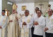 Na Missa Jubilar estiveram presentes, entre os muitos fiéis, Pe. Edigardo, Vigário Paroquial da Catedral, a Turma de Aspirantes ao Diaconato Permanente da Diocese, Seminarista, Acólitos, Ministros e muitas lideranças da Paróquia.