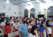 A Igreja Matriz de Palmeira ficou repleta de fiéis. Pe. Raimundo Nonato de Oliveira (Pe. Nonato), Pároco do Lugar, acolheu caravanas das comunidades e visitantes mais distantes, em especial um grupo de amigos, ex-paroquianos de Gilbuiés, que se fizeram presentes para prestigiar a Festa.