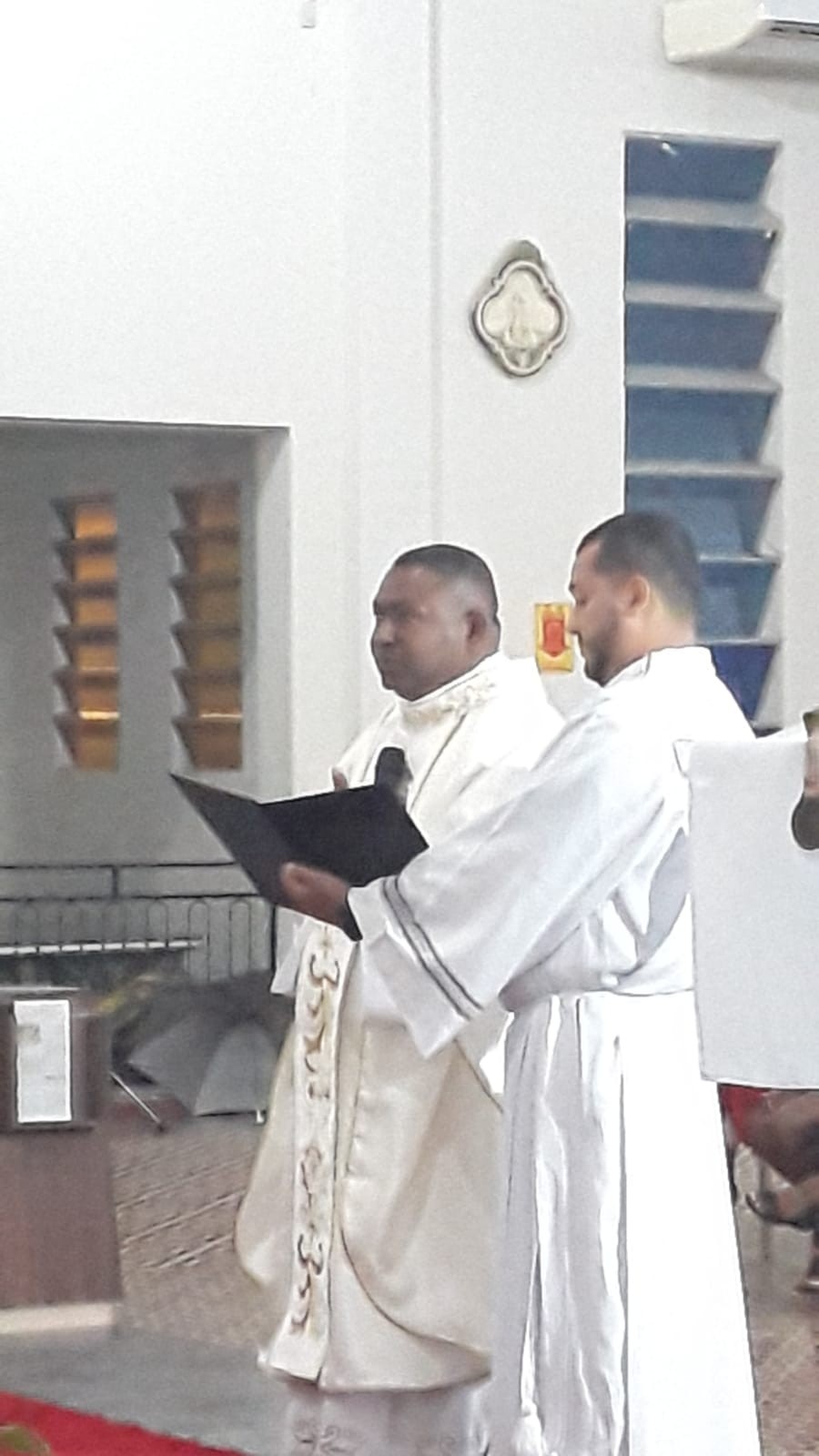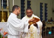 Antes da proclamação do Evangelho o novo Pároco recebeu o Livro dos Evangelhos das mãos do Bispo Diocesano, uma vez que é seu dever anunciar a Palavra de Deus a todas as pessoas, sem distinção.