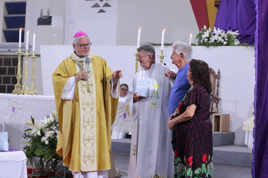 Em um encontro de profunda fé e comunhão eclesial, a Catedral de Nossa Senhora das Mercês sediou, na noite desta quinta-feira, 26 de março, a solene Missa do Santo Crisma e da Unidade. A celebração, presidida pelo bispo diocesano, Dom Marcos Tavoni, reuniu sacerdotes de todas as regiões da Diocese, diáconos e uma expressiva assembleia de fiéis, marcando um dos momentos mais importantes da Semana Santa.