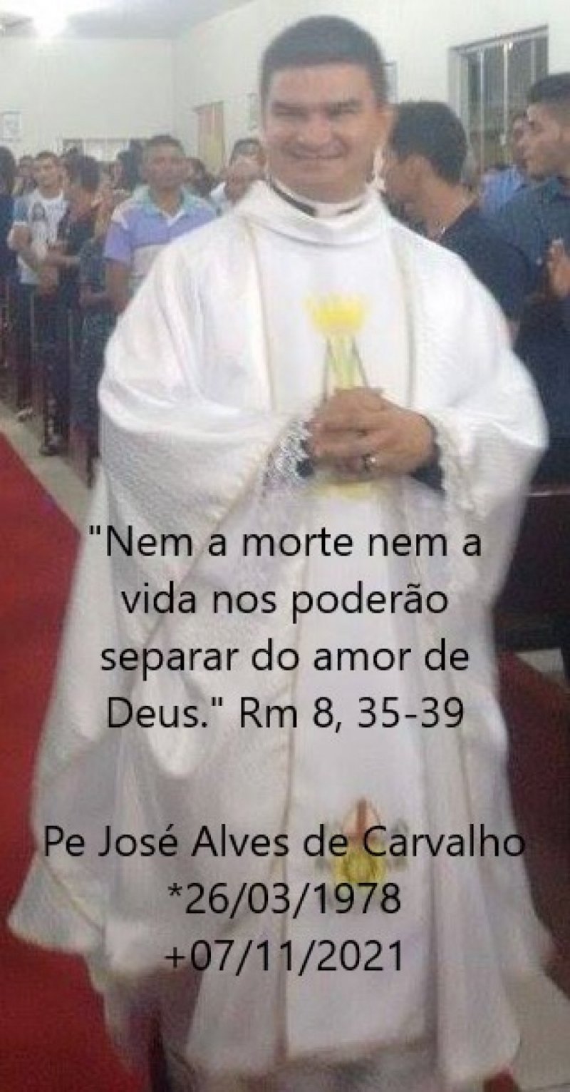 É com o mais profundo pesar que comunicamos o falecimento do Reverendo Padre José Alves de Carvalho, 43 anos, ocorrido na tarde deste último Domingo, dia 07/11/2021.
