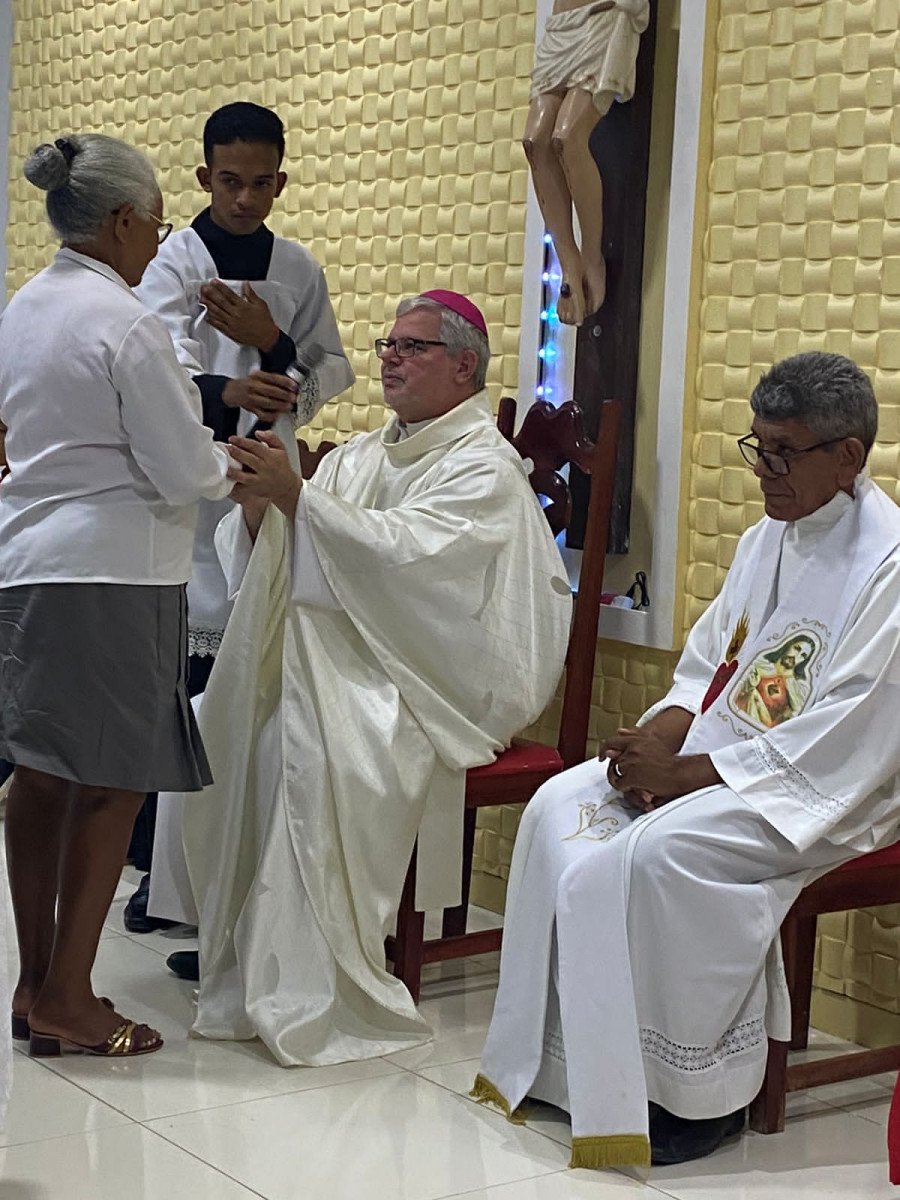Na terça-feira, dia 10 de outubro, dentro da Novena que celebra sua Padroeira, a Paróquia de Nossa Senhora Aparecida, em Alvorada do Gurguéia, Região Pastoral Norte da Diocese, acolheu um no grupo, de 8 novos MESCEs – Ministros Extraordinário da Sagrada Comunhão Eucaristia, para o serviço da Comunidade. A investidura se deu em Missa Presidida por Dom Marcos Antonio Tavoni e concelebrada pelo Pároco, Pe. Izaías Pereira da Silva, e contou com a presença de muitos fiéis de várias partes do Munícipio, localidades da Diocese e outros visitantes, “filhos de Alvorada”, vindos de longe, para prestigiar os Festejos da Comunidade.