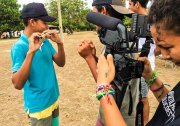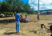Durante a oficina os jovens produziram e editaram vídeos no próprio celular que no mesmo dia exibiram na comunidade durante a abertura do do Festejo de Santa Rita de Cássia.