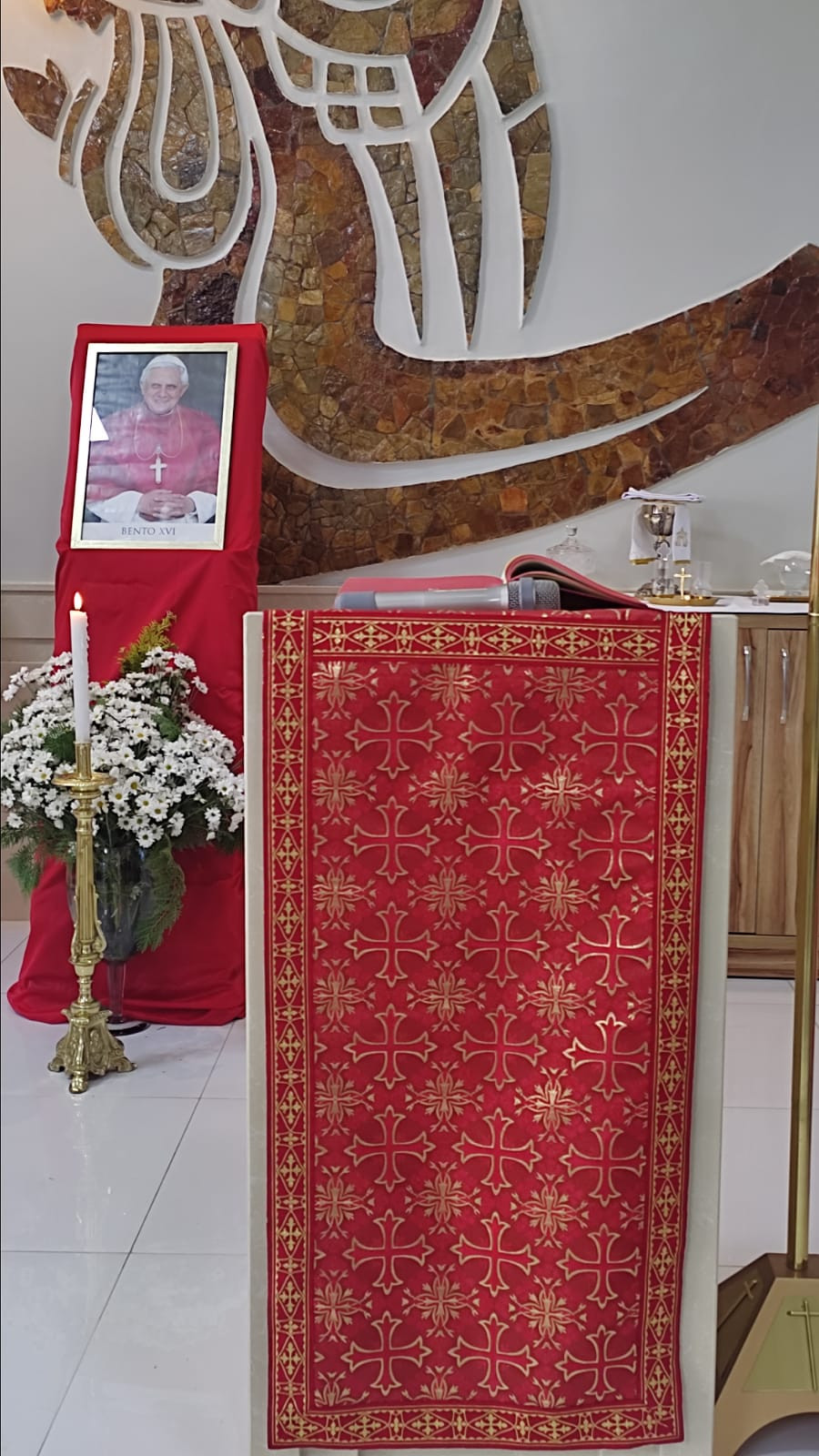 Uma Missa Exequial pelo Papa Emérito Bento XVI, foi celebrada, ontem, 05/01, ao meio-dia, na Capela da Catedral de Nossa Senhora das Mercês, em Bom Jesus. A Missa em sufrágio do Pontífice falecido no dia 31/12/22, foi presidida por Dom Marcos Antonio Tavoni, concelebrada pelos Párocos da Catedral Pe. José Dino e Pe. Marcos Delmondes, Pároco em Morro Cabeça no Tempo; contou, com a presença do Diácono Domingos Pereira, da Catedral, e significativo grupo de fiéis.