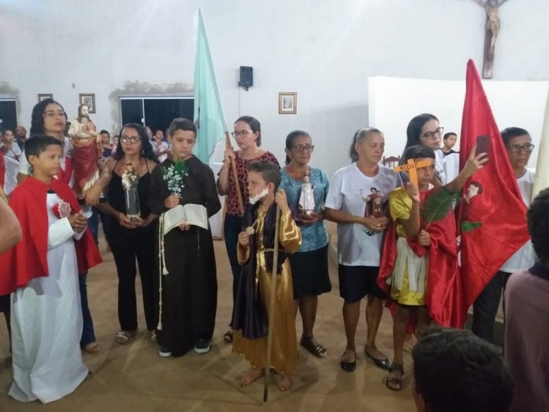 Logo após a oração do terço deu início a Celebração Eucarística com procissão de entrada composta pelas comunidades 12 comunidades rurais e Igreja matriz conduzindo suas imagens. O Evento contou - se com uma expressiva participação dos fiéis católicos do município de Sebastião Barros tanto da zona urbana quanto rural. Que vire tradição!