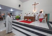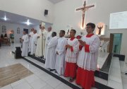 A Missa de posse foi rica em sinais e gestos de acolhida fraterna. Dom Marcos em sua homilia, agradeceu o dom da vida e entrega do Pe. Sebastião, a generosidade e atenção da Diocese de Londrina com a disponibilidade do Padre. Concelebram os Padres Claudinei, Pároco da Menino Jesus de Praga, em Bom Jesus e Diretor da Escola Diaconal; Pe. Antonio Mendes, Vigário Paroquial, em Cristino Castro, Coordenador Pastoral da Região Norte e colaborador com a Paróquia de Santa Luz, no tempo de vacância da Paróquia. Também estavam presentes os Diáconos Permanentes Altamiran, de Santa Luz e Renato de Cristino Castro.