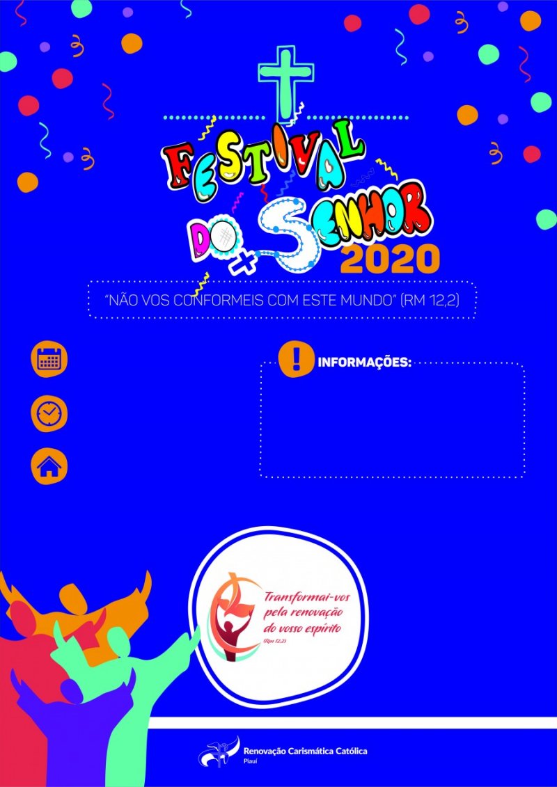 A Renovação Carismática Católica da Diocese de Bom Jesus-PI realizará nesse ano de 2020, o XVI Festival do Senhor, evento que é realizado todo ano em toda a diocese e sempre no período do feriado de Carnaval. O evento acontecerá entre os dias 23 a 25 de fevereiro de 2020 e toda a comunidade da diocese está convidada a participar.