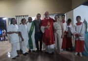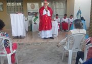 Encerrando sua passagem por Teresina, na noite de sábado Dom Marcos celebrou a missa da Solenidade de São Pedro e São Paulo na Comunidade de Vida ?Jardim de Nossa Senhora?, Diaconia Territorial ?Santa Rita?, no Bairro Vale do Gavião.
