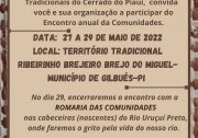 Realizou-se no Território Tradicional “Ribeinho Brejeiro” e “Brejo do Miguel”, interior do Município de Gilbués, no último final de semana, 27 a 29 de maio, mais uma Romaria das Comunidades da Diocese de Bom Jesus do Gurguéia.