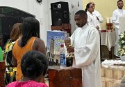 Dom Marcos e os seminaristas e vocacionados, ao final do encontro expressaram gratidão pelos que colaboraram com o encontro, em especial ao Pároco da Catedral, Pe. José Dino, pelas refeições diárias e ao Pe. Atenagoras, pela calorosa acolhida em Redenção.