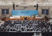 Na manhã desta sexta-feira (10), aconteceu no Santuário de Nossa Senhora Aparecida a missa e cerimônia de encerramento da 57ª Assembleia Geral da CNBB (Conferência dos Bispos do Brasil), como também a posse da nova presidência: Dom Walmor Azevedo (Arcebispo de Belo Horizonte) – Presidente, Dom Jaime Splenger (Arcebispo de Porto Alegre) – 1º vice-presidente, Dom Mário Antônio da Silva (Bispo de Roraima) – 2º Vice-presidente e Dom Joela Portella Amado (Bispo Auxiliar do Rio de Janeiro) – Secretário Geral.