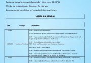 Neste período de Visita Pastoral, Dom Marcos realizará encontros com os CPP e CPE, lideranças, pastorais, grupos e movimentos da Paróquia; visitará instituições como Prefeitura, Câmara Municipal, colégios públicos e privados, sempre levando, como presença da Igreja, o anúncio da Boa Nova, a alegria do Evangelho.